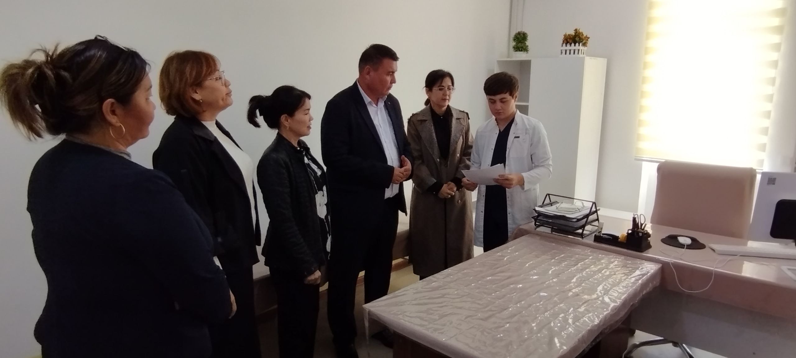 Usı múnásibet penen búgin rayon hákimi Niyazimbetov Valijan Batırbaevich, Ózbekstan Respublikası Densawlıqtı saqlaw ministrligi Ruwxıy-ámeliy ilimiy orayınıń direktorı, professor Ashurov Zarifjon Sharipovich, Qaraqalpaqstan Respublikası densawlıqtı saqlaw ministriniń birinshi orınbasarı Asqarov Akmal Alisherovich, tiyisli shólkemlerdiń basshıları, ǵalaba xabar quralları wákilleri, dispanser jámááti hám máhálle nuranıyları jańalanǵan mákemeniń jumısı menen tanıstı.