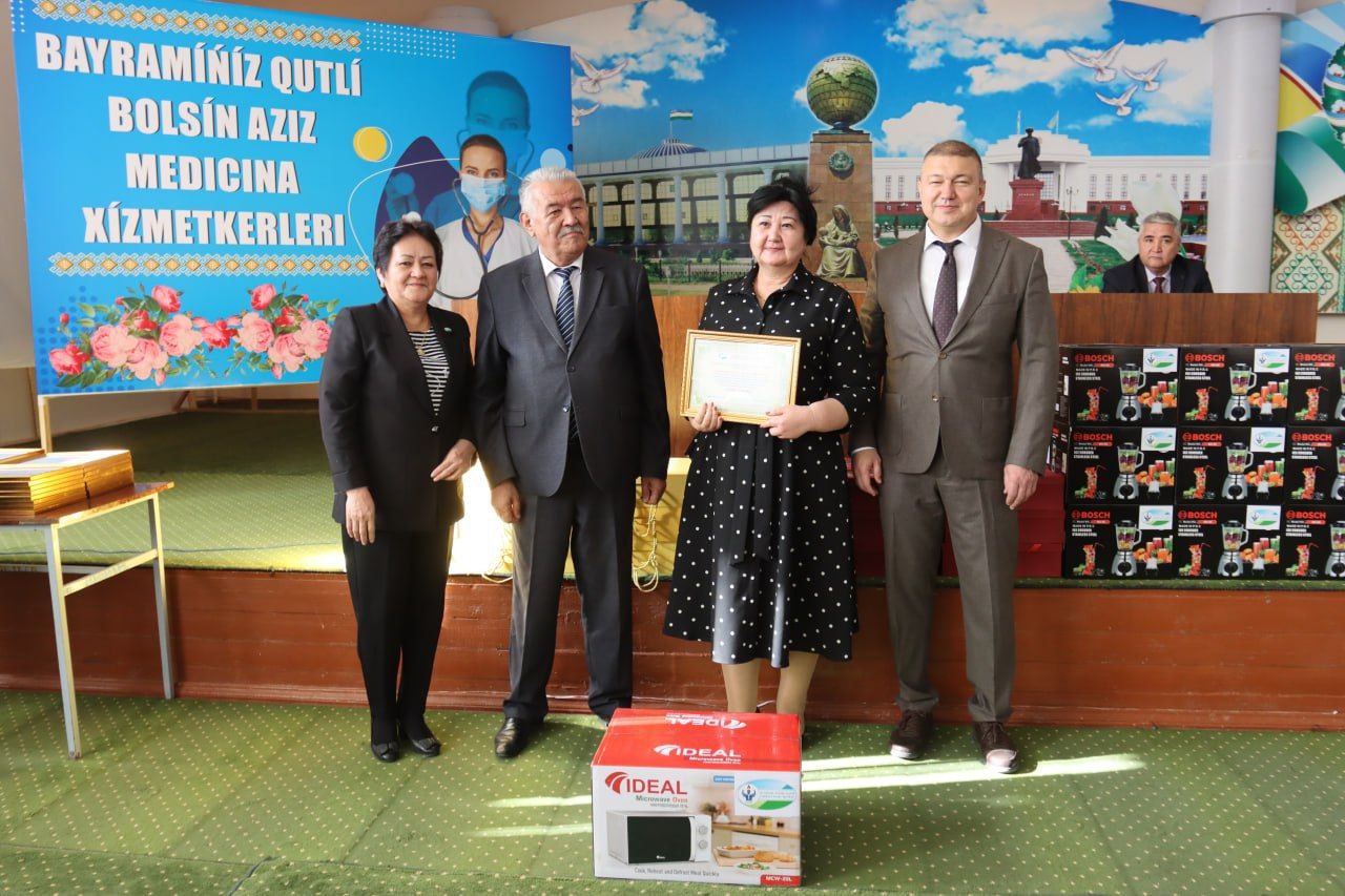 Ilajda Ózbekstan densawlıqtı saqlaw xızmetkerleri kásiplik awqamınıń Qaraqalpaqstan Respublikası Keńesiniń xızmetkerlerine, densawlıqtı saqlaw tarawında jemisli miynet etken miynet nuranıylarına, densawlıqtı saqlaw tarawındaǵı jemisli xızmeti ushın pidayı xızmetkerlerge “Húrmet jarlıǵı” hám bahalı sawǵalar tapsırıldı.