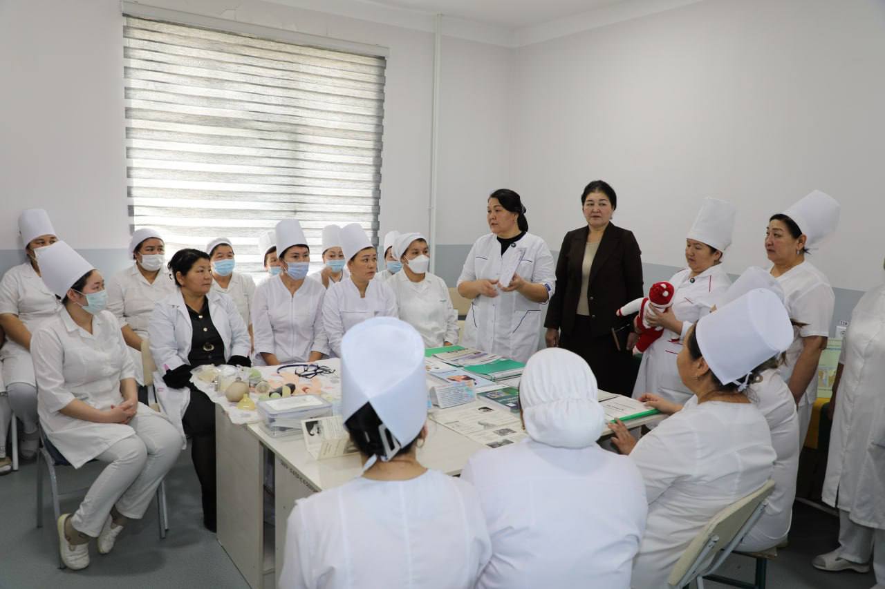 Onda rayon hákiminiń orınbasarı, Shańaraq hám hayal-qızlar bólimi baslıǵı G.Mambetniyazova, Qaraózek rayonı tuwıw bólimi neonatolog shıpakeri G.Jaybergenova, rayonlıq tuwıw bólimi shıpakerleri, orta buwın medicina xızmetkerleri qatnastı.
